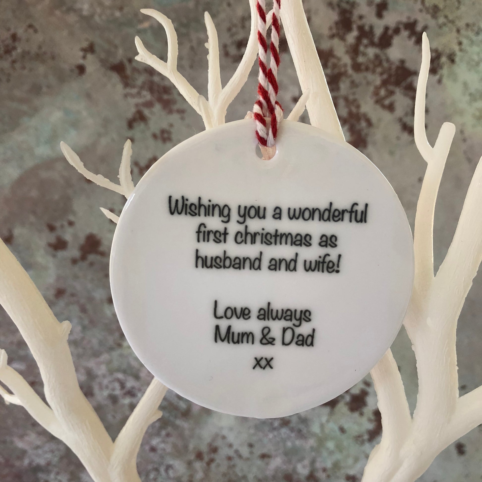 These personalised Ceramic decorations make a special gift to mark a couples 1st Christmas as Mr & Mrs.