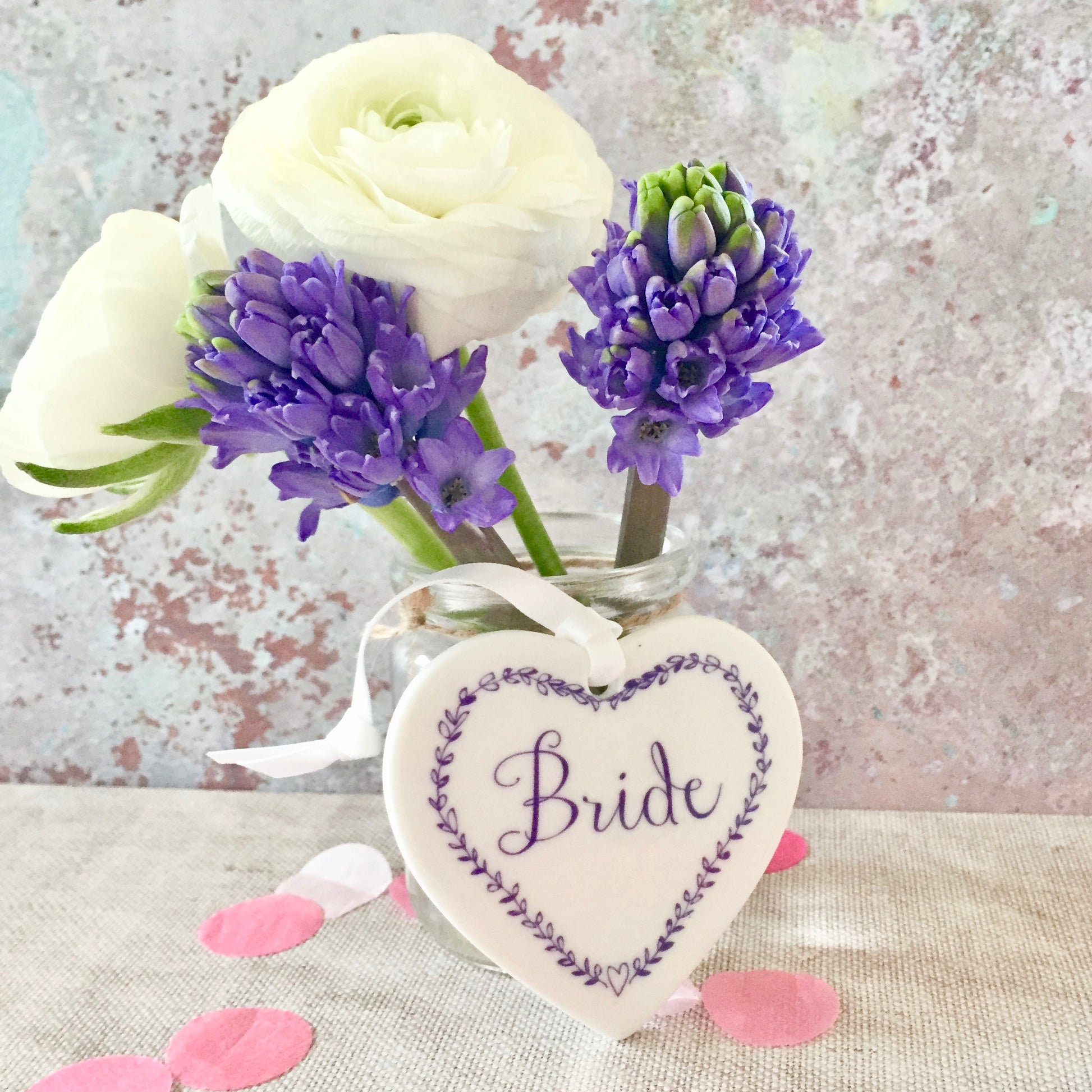Each item is hand-crafted to order, printed using a special heat method on to the ceramic heart, to ensure it is sealed and will last as a keepsake forever. The hearts are strung with white ribbon, or we can use a complementary colour if desired.