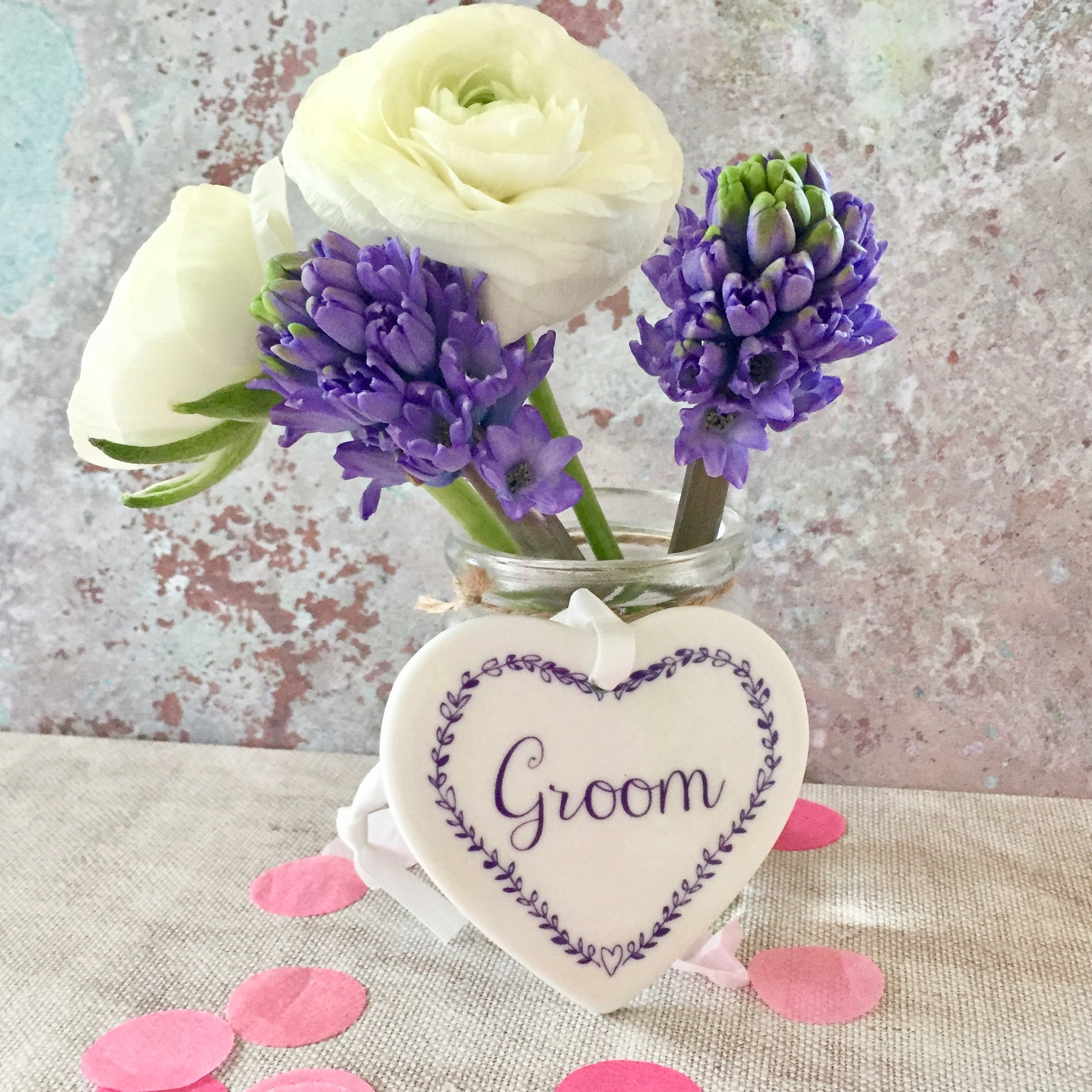 ‘Bride & Groom’ ceramic heart place settings/keepsakes