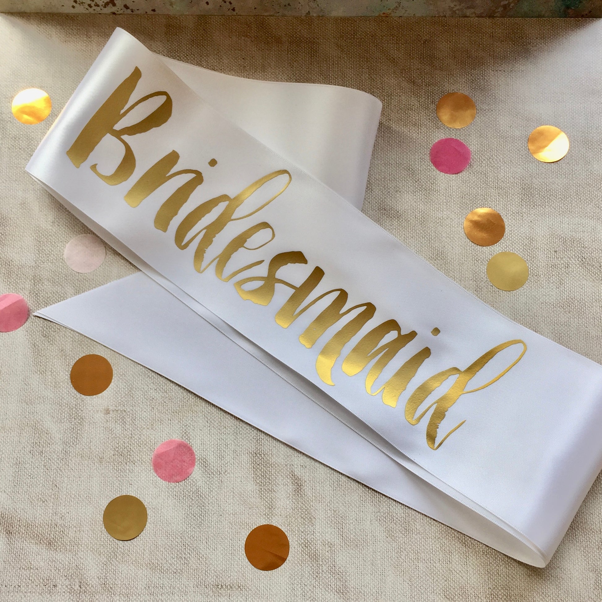Beautiful luxurious hen party sashes, made from double satin ribbon with the text printed in a contemporary brush style font.