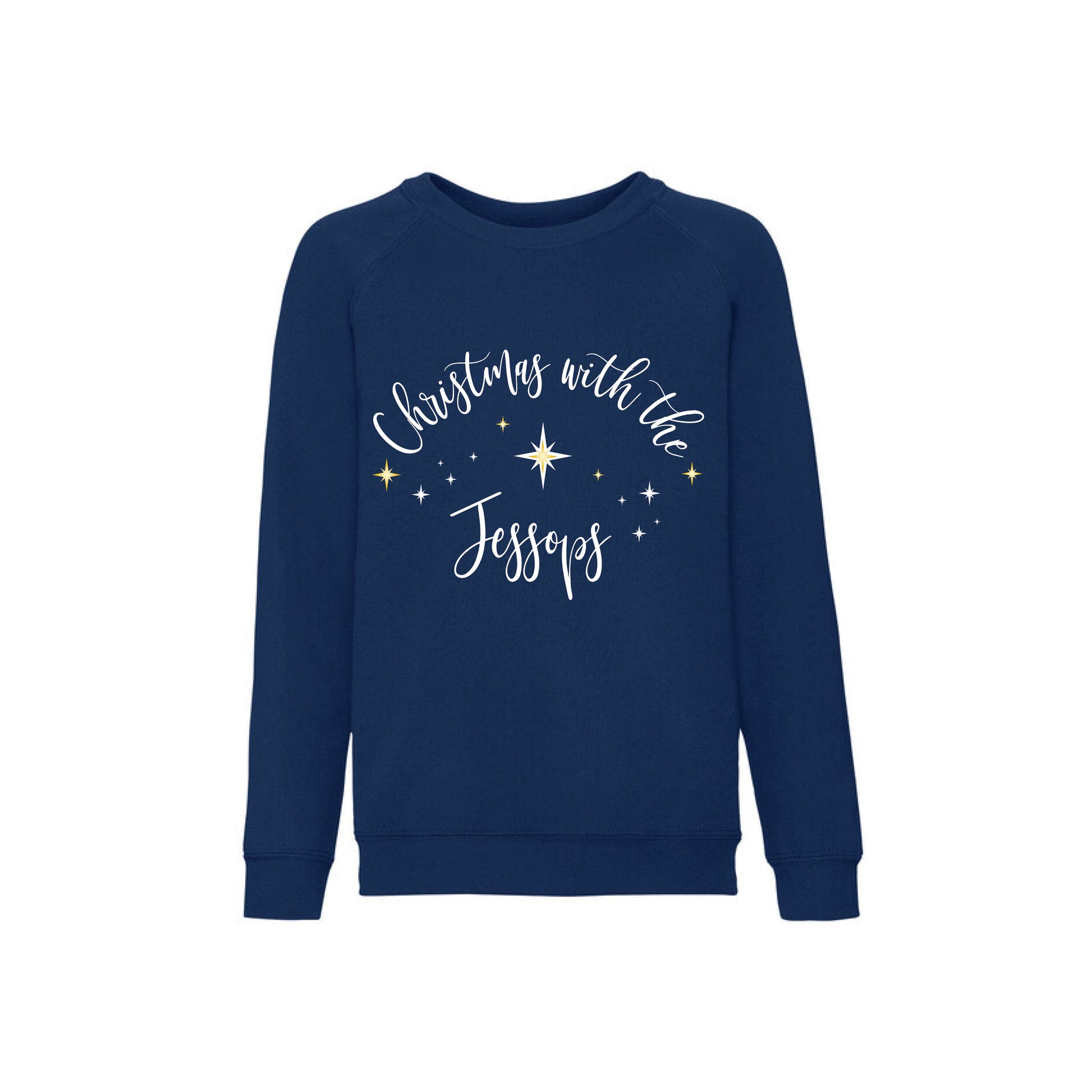 Personalised Christmas Jumpers to capture the Magic of Christmas. Our 'Christmas with...' family design is personalised with the family surname printed in white, perfect for all the extended family.