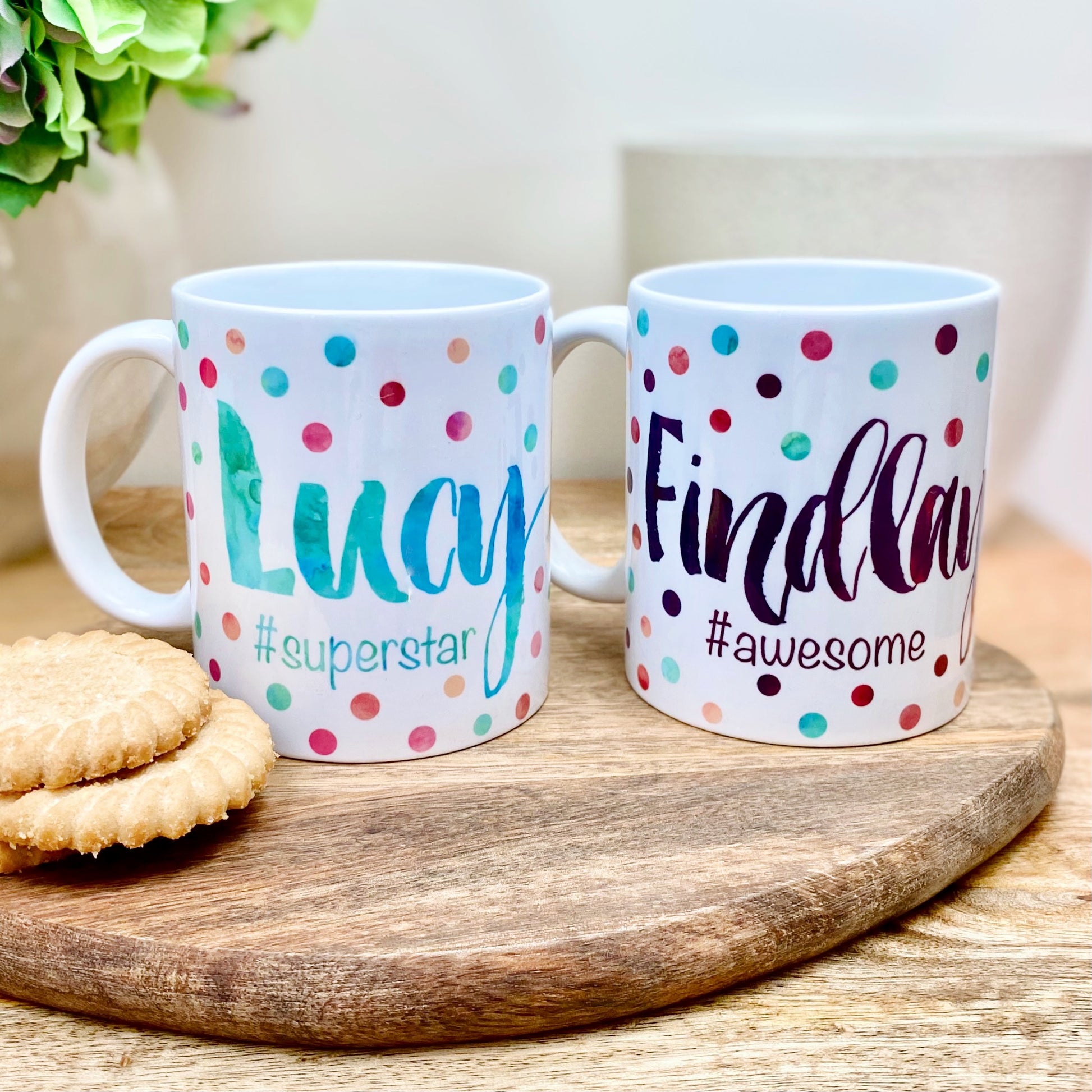 You will personalise the mug with the recipients name and a hashtag of your choice which will be printed under the name. If you wish you can choose to add a short personalised message to be printed on the reverse of the mug also.