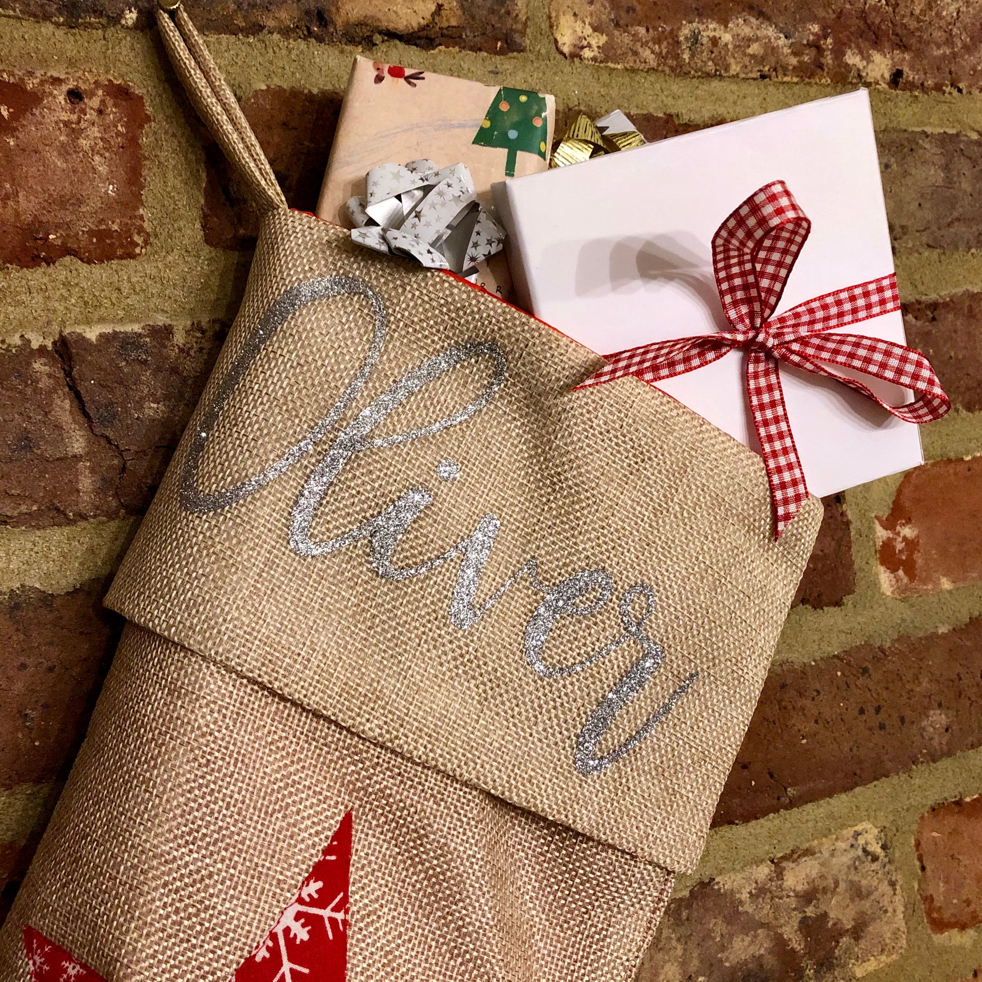 You will personalise the stocking with the name of your choice which we will print in your choice of colour on the top of the stocking.
