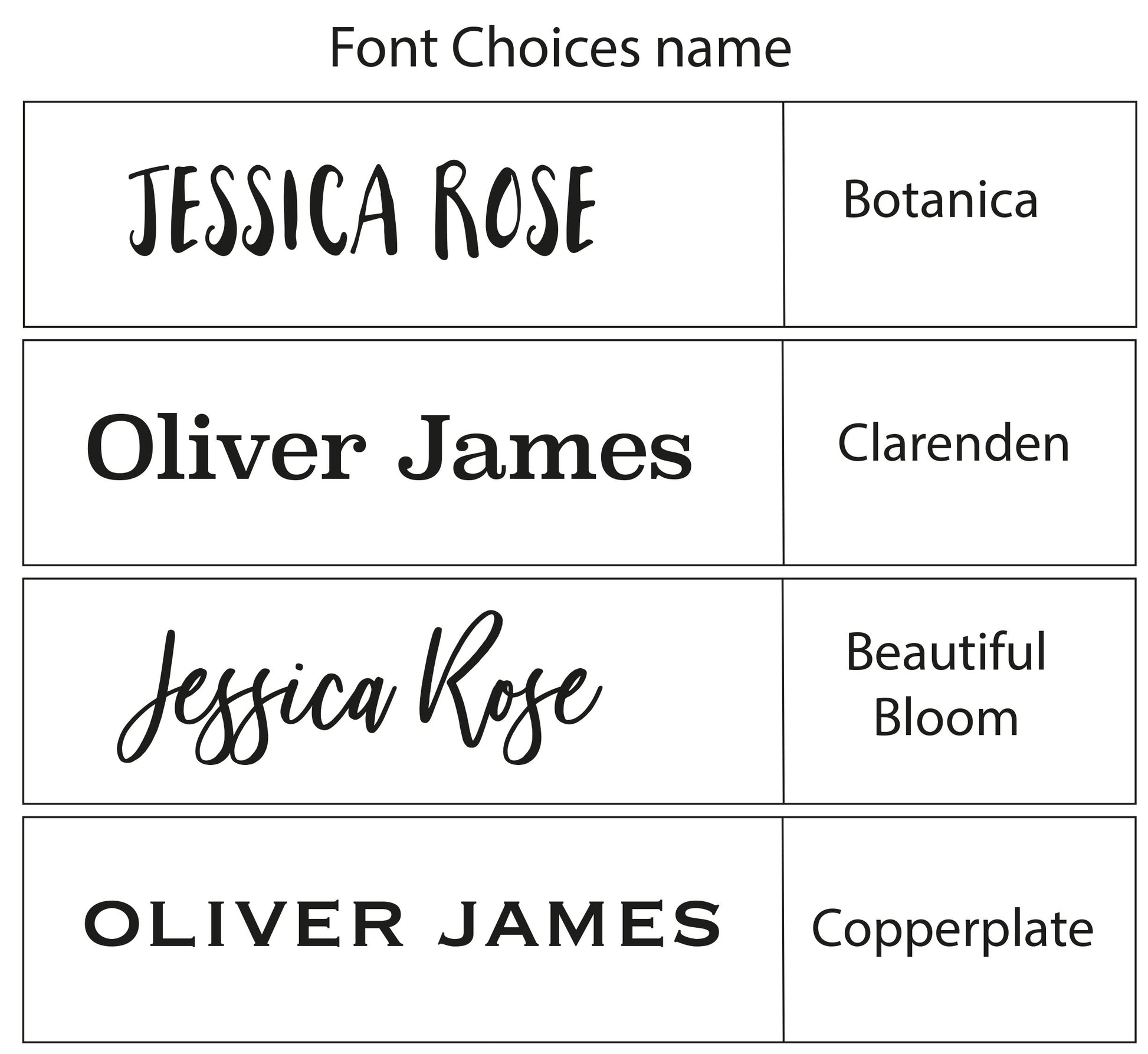 A choice of fonts for the name is available.