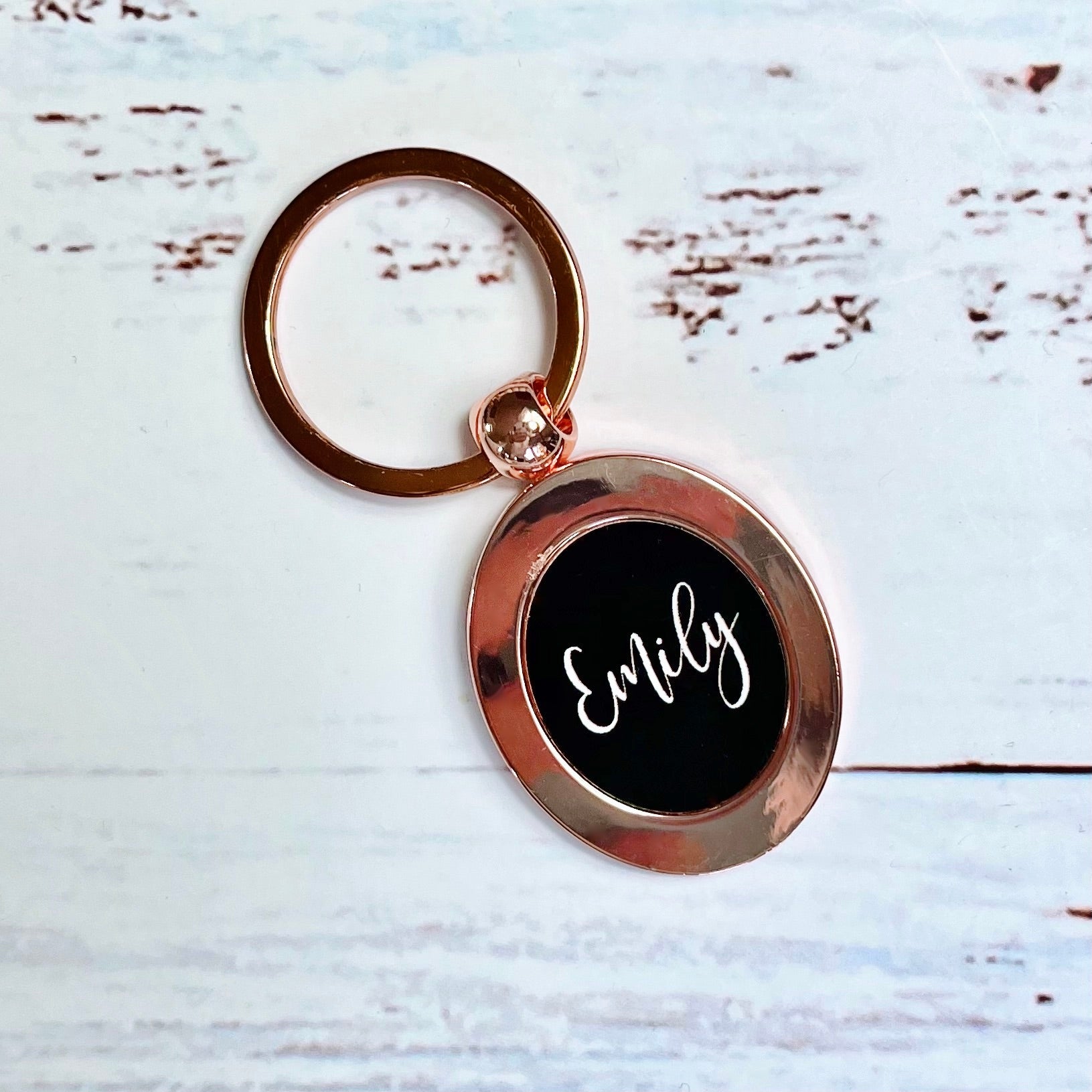 A lovely Personalised Rose Gold effect Metal Key Ring