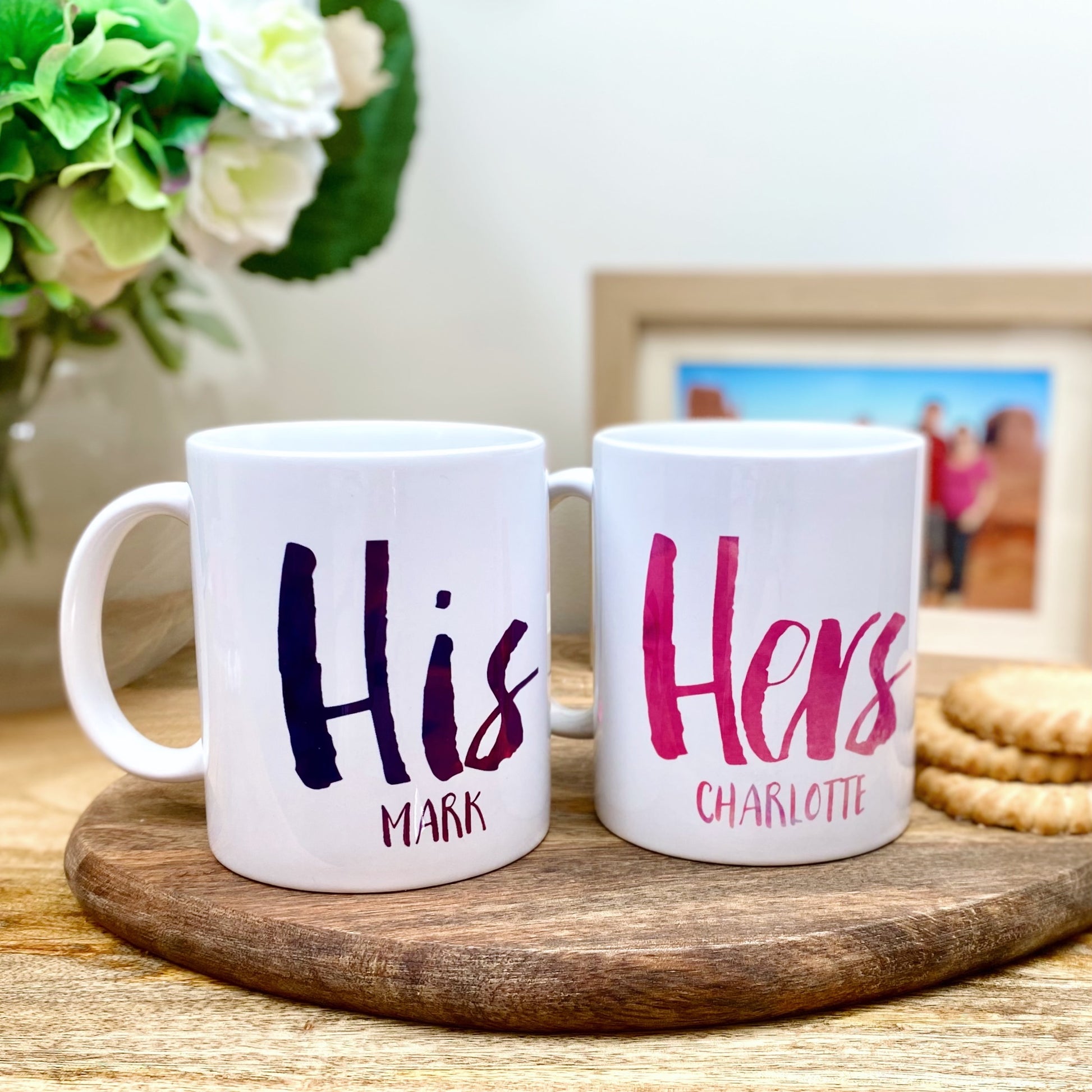 A lovely pair of His and Hers Mugs in our unique Contemporary font.the newly wed’s, a lovely keepsake as a wedding gift or as an anniversary gift.