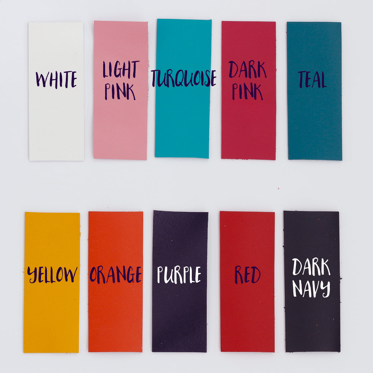 There is a lovely choice colours of leather available, and a range of colours for the print to complement your style.
