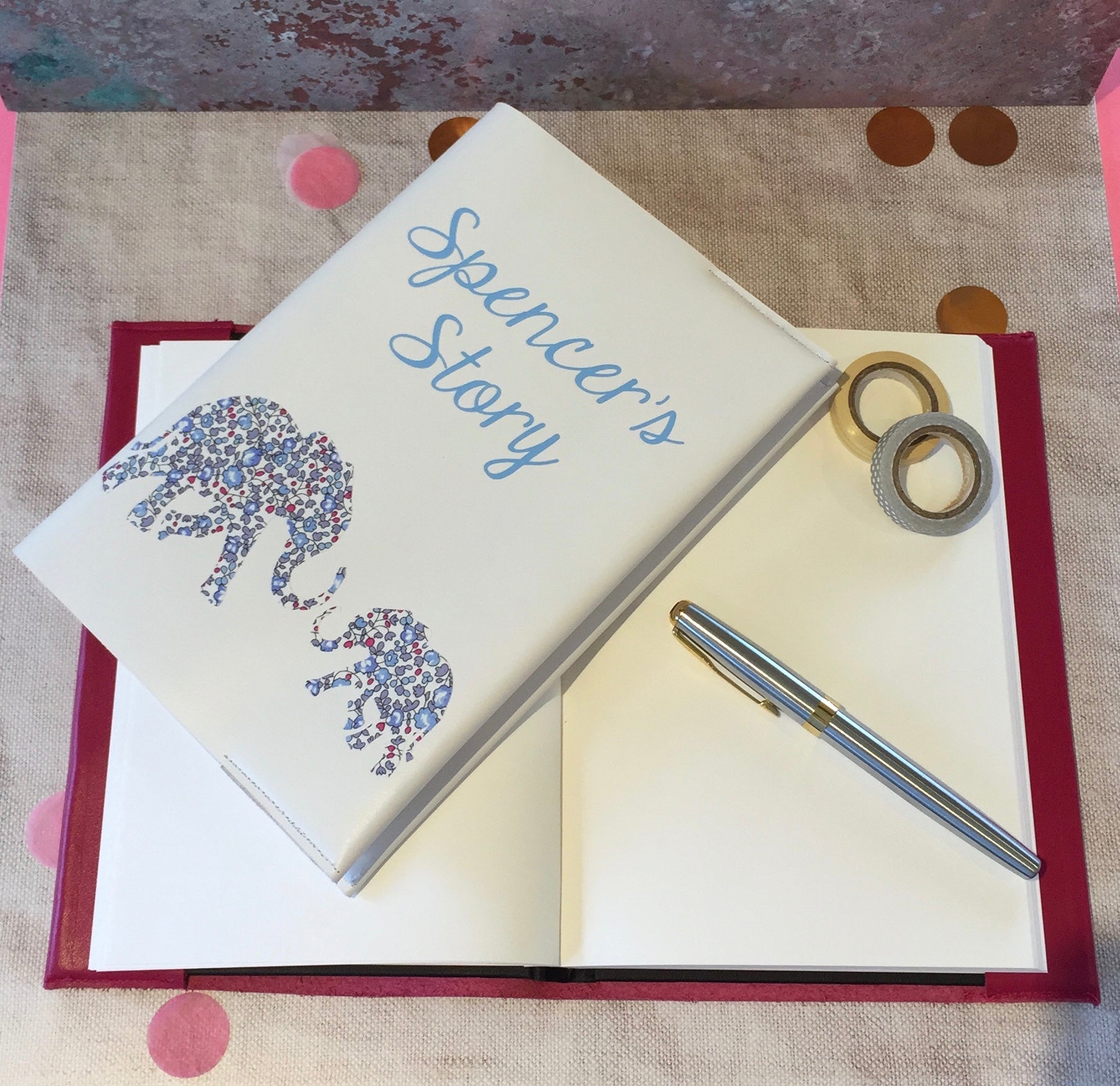 This can be a journal that mummy makes for her baby, somewhere to track the little things that can so easily be forgotten. Things that make her laugh and smile, the little nuances that brighten up a parents day, capturing the start of her child’s story.