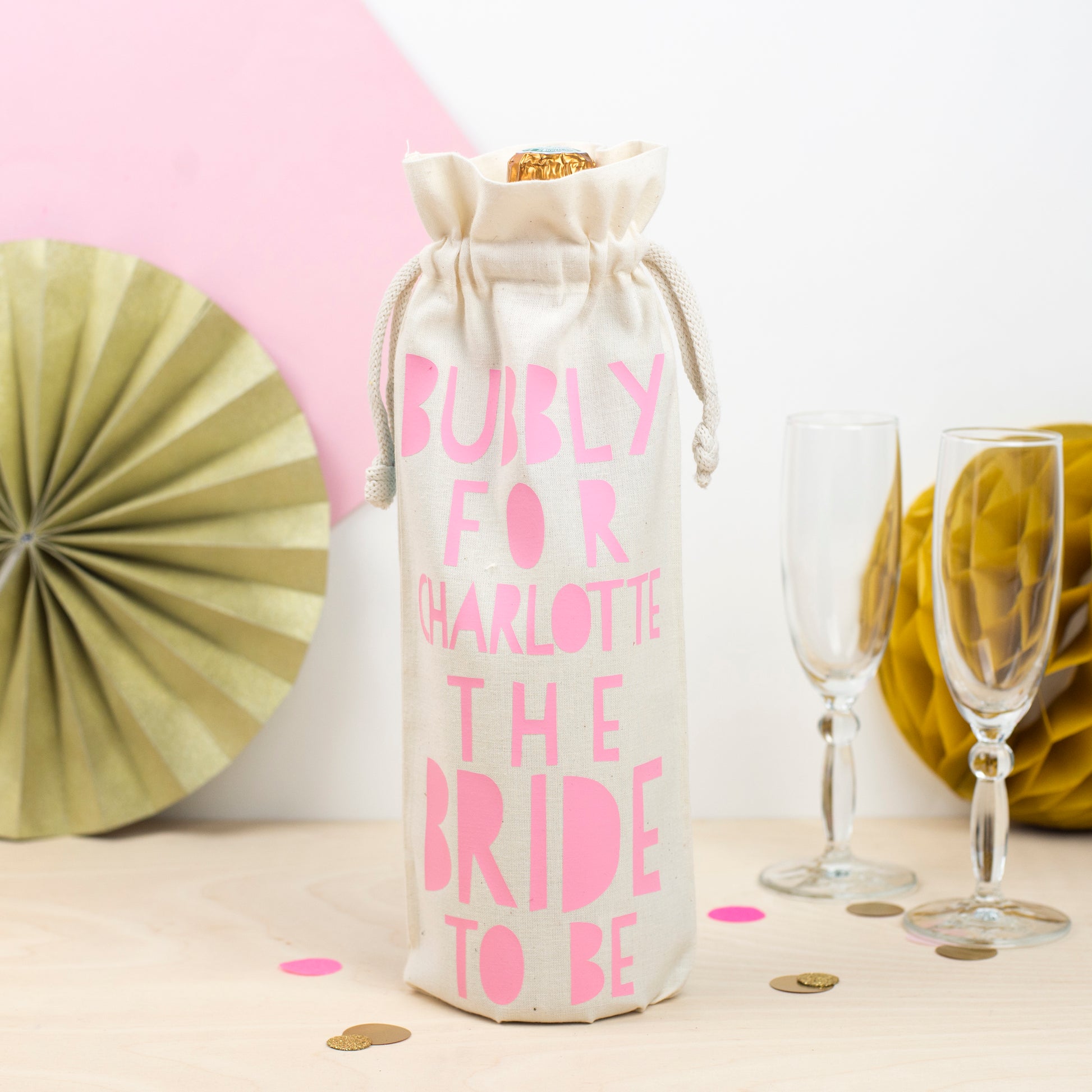 The text is printed on to the unbleached cotton drawstring bag and will stay on forever, even after washing! So the Bride to be will be able to keep this bag as a momento, long after the bubbles have gone!