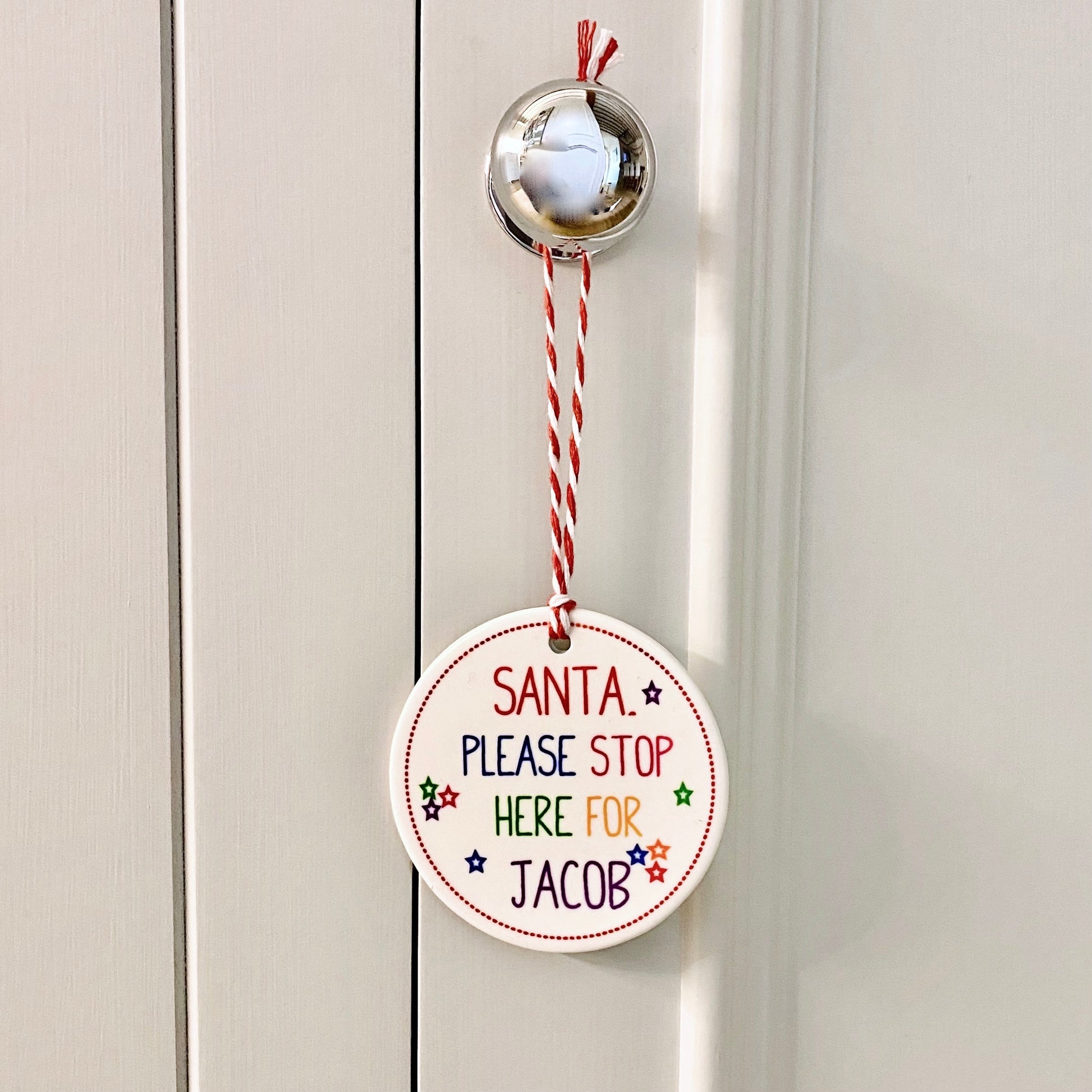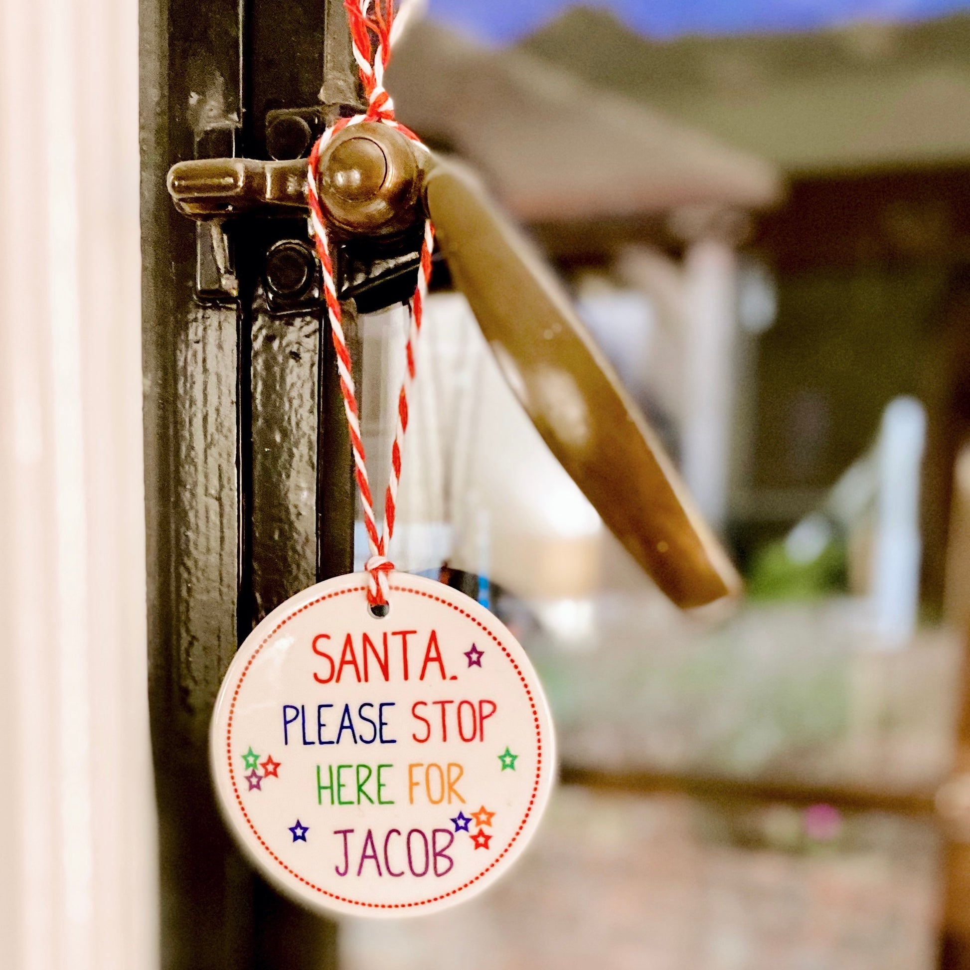 Strung with colourful bakers twine, they can be hung anywhere to ensure Santa knows who to visit - by the fireplace, on the bedroom door, on the tree, at the end of the bed, a door, a window or add them to the the child’s stocking, the choice is endless, but Santa is sure to know.