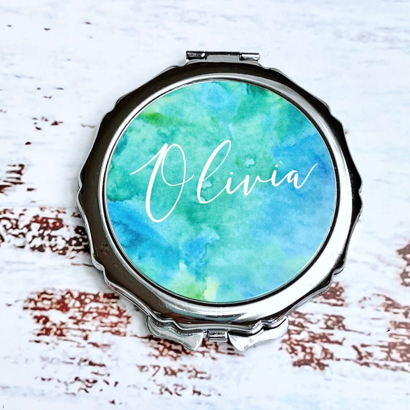 Round Silver Compact Mirror