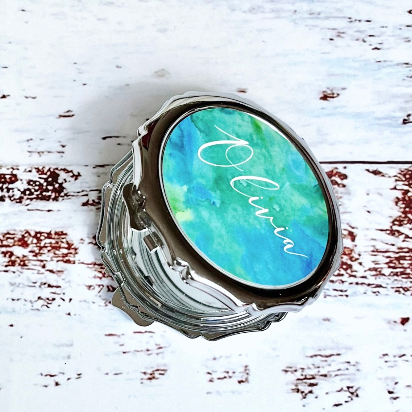 You will personalise the mirror with a name, which we will print in white against your choice of our specialist background colours.