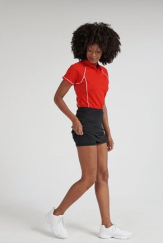 - Textured knit outer skirt, Inner short made from permanent wicking CoolPass fabric with reversed seam for comfort. Waistband with inner drawcord